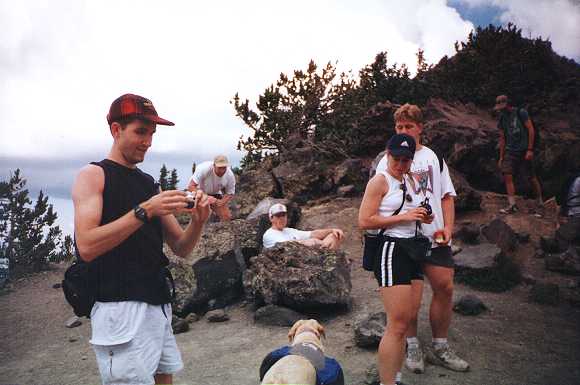 Walking along the ridge above the saddle point, you are greeted with no less than three false peaks. At this vantage point, you can see a couple of them. In the photo we have (clockwise from top left) Scott, Greg, Gerhardt, Robert, Michelle, me, and Byron. A sudden gust of the famous wind up here claimed my favorite hat and sent it about 1,000 feet down the hill. Now I'm not one to litter on hikes, but there's no way I was going after that hat!