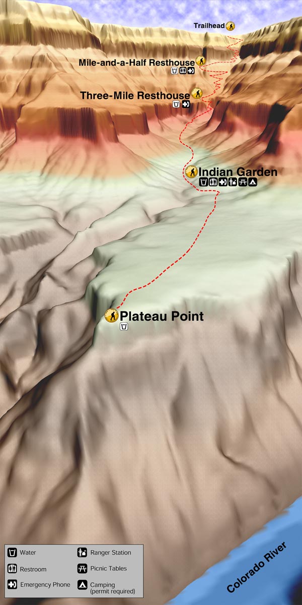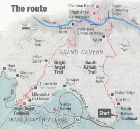 | The Grand Hike is quite literally a walk in the park, Grand Canyon National Park that is! We spend a weekend camping at the Grand Canyon. On Saturday, we hike from the top of the canyon to the bottom and back up. I cater the whole thing, so all you have to do is come and have fun. Don't be misled though; this hike isn't easy by any means. Some might even call it a death march. But with proper training and guidance, you'll thoroughly enjoy the experience and join an elite group of hikers who have conquered the canyon. Grand Hike Stats: